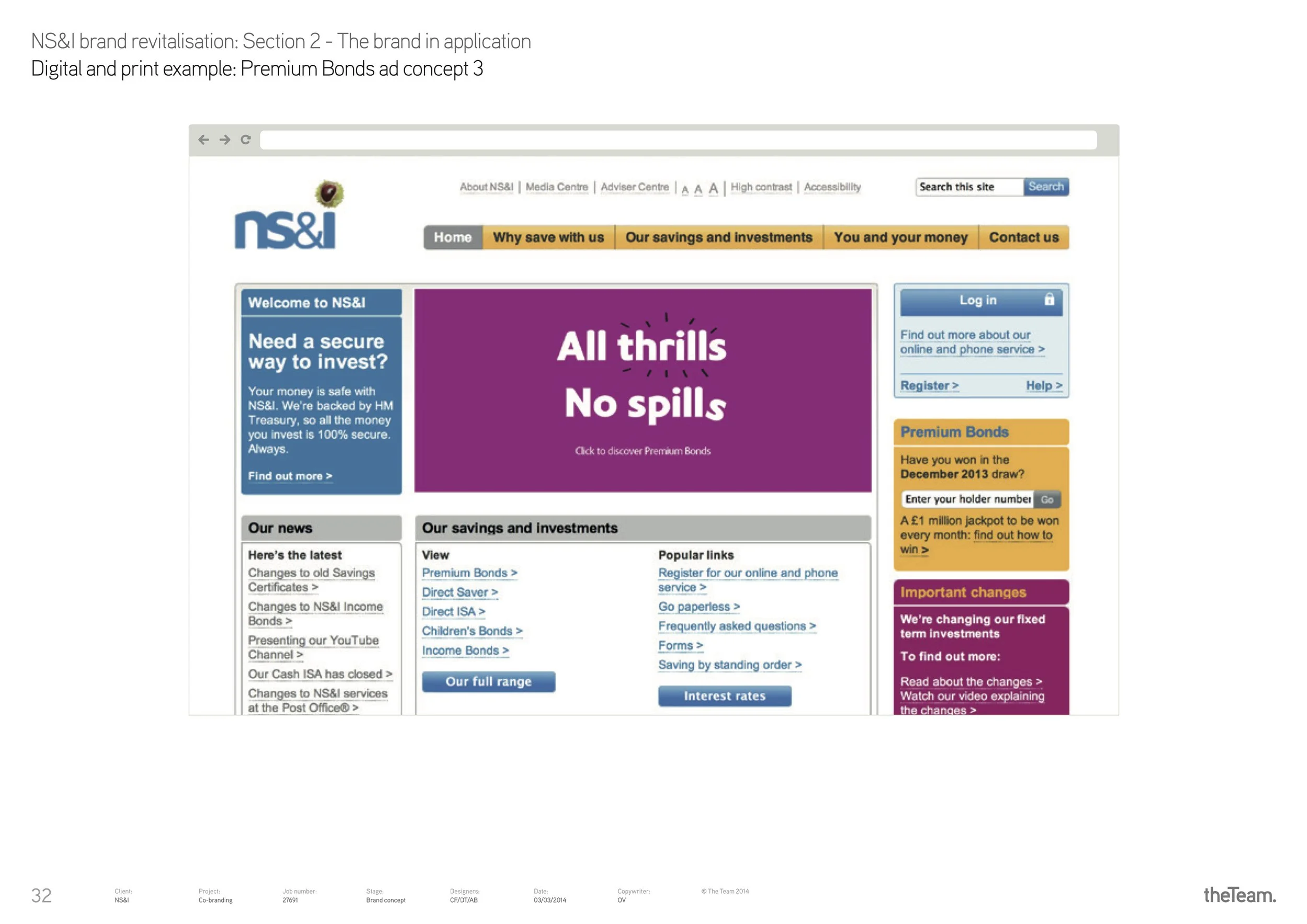 The revitalised brand ran through the entire customer experience, from brochures, leaflets, print ads and in digital. My role involved leading the digital UX development — so the experience of buying new bonds, claiming prizes, or raising a concern online all delivered against our new principles.